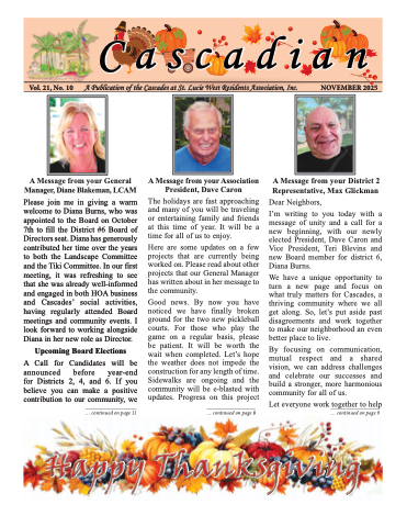 Vol. 21, No. 10 A Publication of the Cascades at St. Lucie West Residents Association, Inc. NOVEMBER 2025