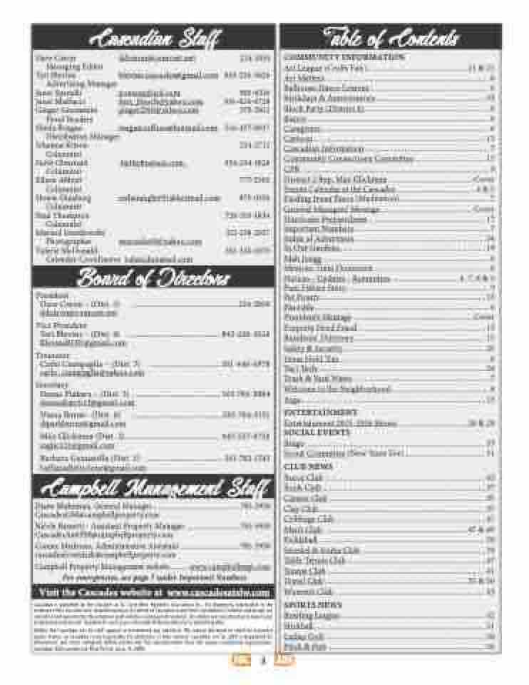 controlled and approved by the volunteer staff, which is comprised of residents. All articles are to be directed to Dave Caron