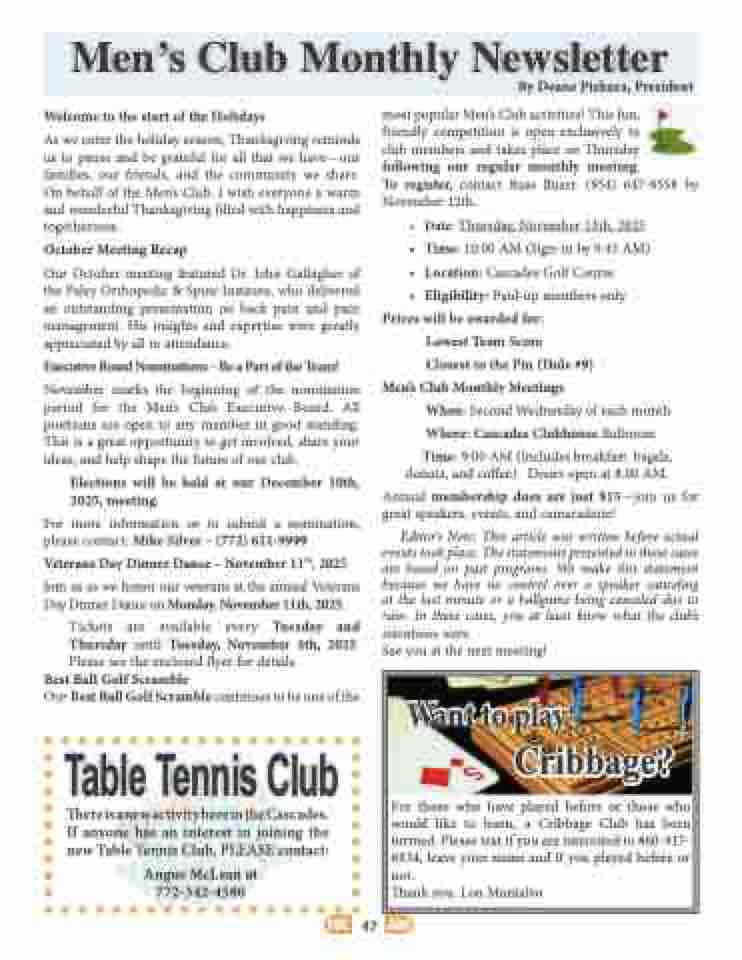 Men’s Club Monthly Newsletter Men’s Club Monthly Newsletter By Deane Piekara, President