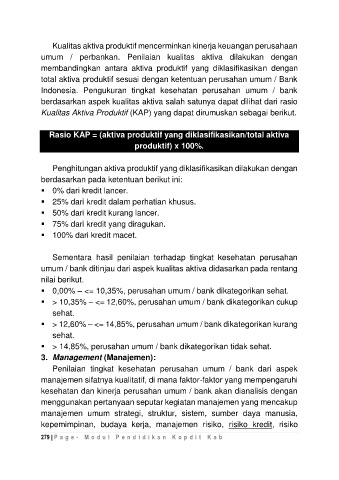 Kualitas Aktiva Produktif (KAP) yang dapat dirumuskan sebagai berikut.