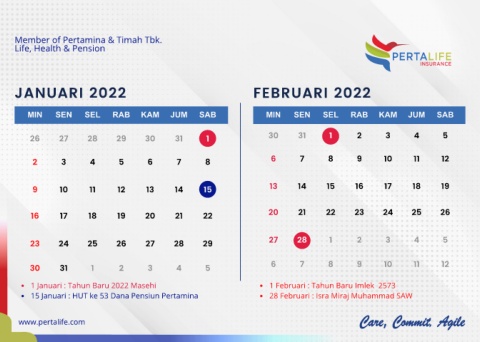 15 Januari : HUT ke 53 Dana Pensiun Pertamina 28 Februari : Isra Miraj Muhammad SAW
