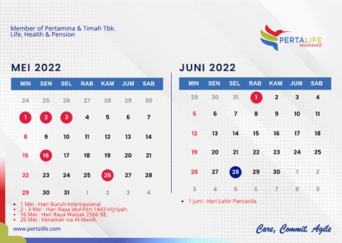 2 - 3 Mei : Hari Raya Idul Fitri 1443 Hijriyah.