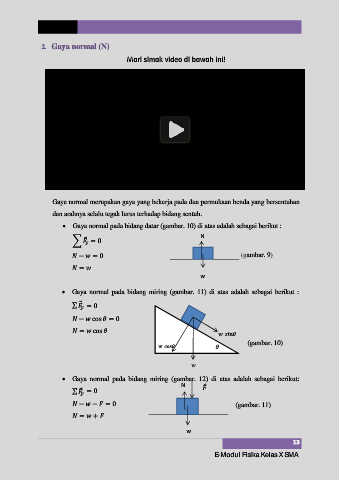 Gaya normal pada bidang datar (gambar. 10) di atas adalah sebagai berikut :
