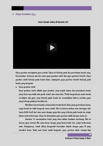 dalam arah berlawanan. Gaya itu dinamakan gaya gesekan statik dengan simbo