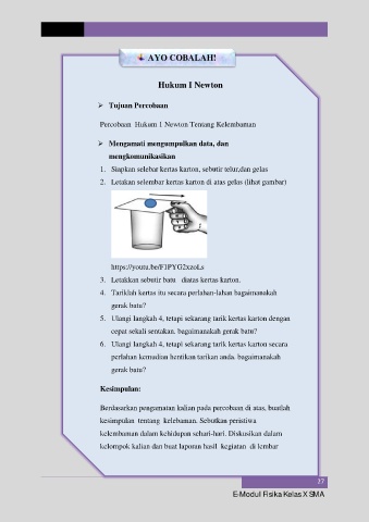 Percobaan Hukum 1 Newton Tentang Kelembaman