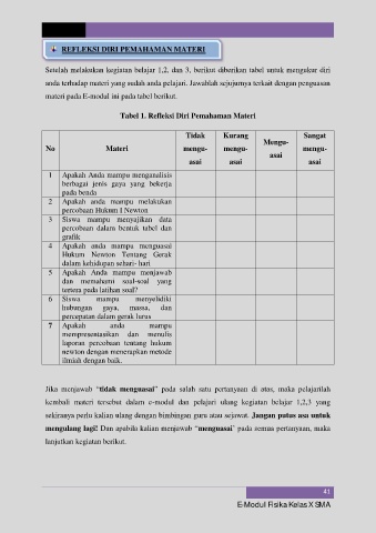 Tabel 1. Refleksi Diri Pemahaman Materi