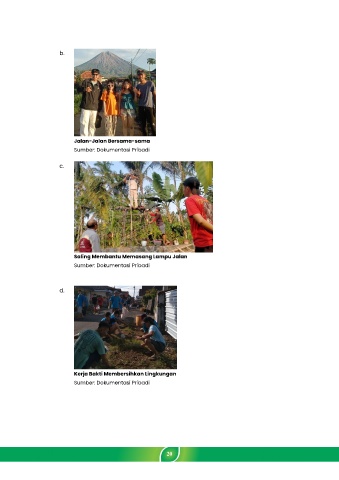 b. Jalan-Jalan Bersama-sama Sumber: Dokumentasi Pribadi c. Saling Membantu Memasang Lampu Jalan Sumber: Dokumentasi Pribadi d. Kerja Bakti Membersihkan Lingkungan Sumber: Dokumentasi Pribadi 20