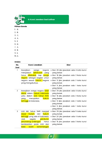 2 Kewajiban warga negara telah • Skor 25 jika jawaban ada 4 kata kunci