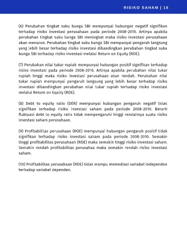 tinggi profitabilitas perusahaan (ROE) maka semakin tinggi risiko investasi saham.