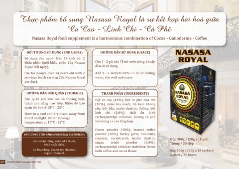 Nasasa Royal food supplement is a harmonious combination of Cocoa - Ganoderma - Coffee