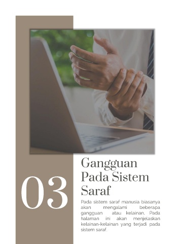 Gangguan 03 Pada Sistem Saraf Pada sistem saraf manusia biasanya akan atau kelainan. Pada gangguan mengalami beberapa halaman ini akan menjelaskan kelainan-kelainan yang terjadi pada sistem saraf.