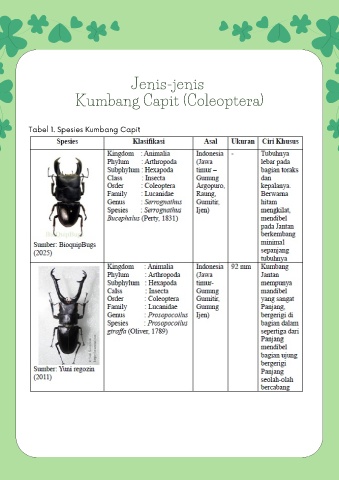 Jenis-jenis Kumbang Capit (Coleoptera) Tabel 1. Spesies Kumbang Capit