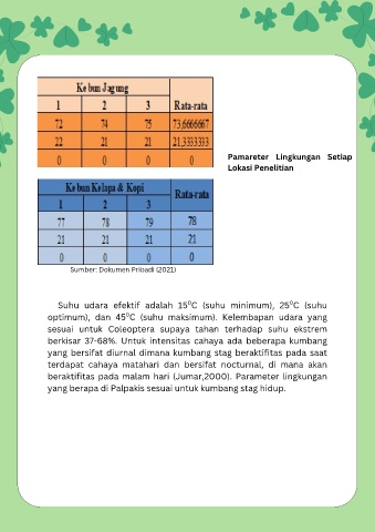 berkisar 37-68%. Untuk intensitas cahaya ada beberapa kumbang