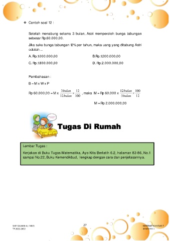 Jika suku bunga tabungan 12% per tahun, maka uang yang ditabung Astri