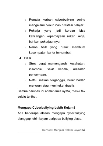 o Remaja korban cyberbullying sering