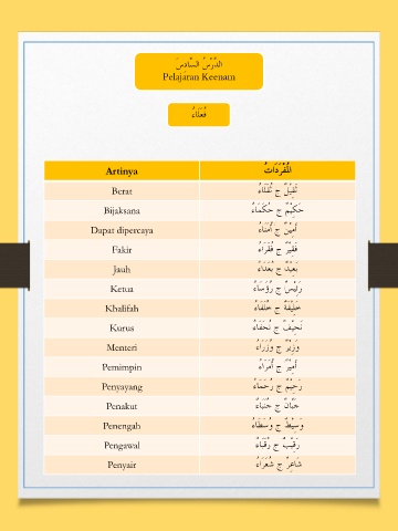 Artinya Berat Bijaksana Dapat dipercaya Fakir Jauh Ketua Khalifah Kurus Menteri Pemimpin Penyayang Penakut Penengah Pengawal Penyair