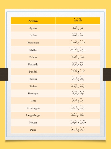 Artinya Agama Badan Bulu mata Sahabat Pohon Piramida Pundak Rezeki Waktu Terompet Tinta Bendungan Langit-langit Kolam Pasar