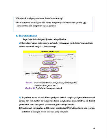 b) Reproduksi secara seksual tidak terjadi pada bakteri, tetapi terjadi pemindahan materi