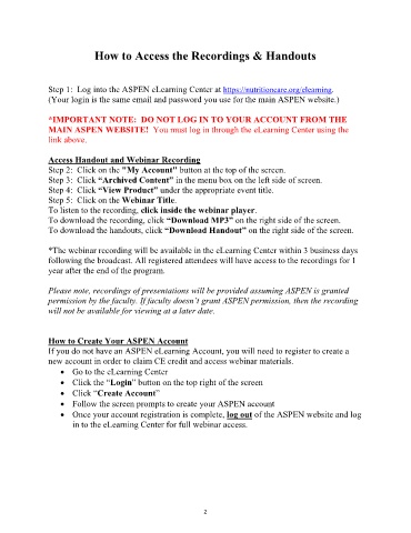 Step 1: Log into the ASPEN eLearning Center at https://nutritioncare.org/elearning.