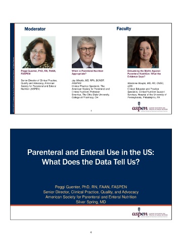 © 2019 ASPEN | American Society for Parenteral and Enteral Nutrition. All Rights Reserved. Peggi Guenter, PhD, RN, FAAN, When is Parenteral Nutrition Debunking the Myths Against