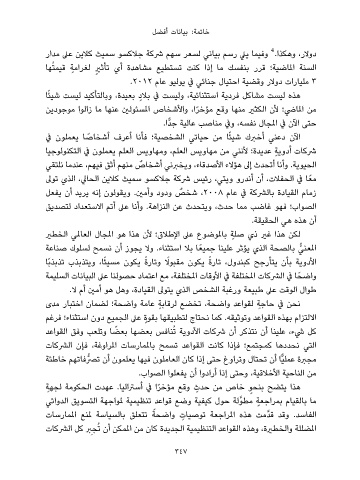 ﻛﻞ ﳾء ،ﻋﻠﻴﻨﺎ أن ﻧﺘﺬﻛﺮ أن ﴍﻛﺎت اﻷدوﻳﺔ ﺗُﻨﺎﻓﺲ ﺑﻌﻀﻬﺎ ﺑﻌ ًﻀﺎ وﺗﻠﻌﺐ وﻓﻖ اﻟﻘﻮاﻋﺪ