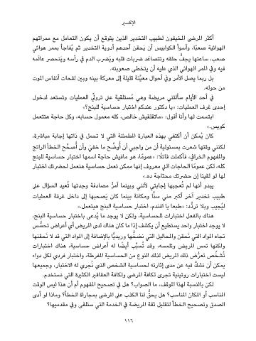 ﰲ أﺣﺪ اﻷﻳﺎم ﺳﺄﻟﺘﻨﻲ ﻣﺮﻳﻀﺔ وﻫﻲ ُﻣﺴﺘﻠﻘﻴﺔ ﻋﲆ ﺗﺮو ﱢﱄ اﻟﻌﻤﻠﻴﺎت وﺗﺴﺘﻌﺪ ﻟﺪﺧﻮل