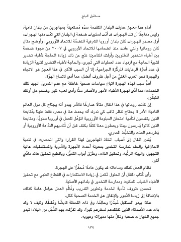 اﻟﺨﺪﻣﺎت؛ ﻣﻤﺎ أ ﱠدى ﻟﻬﺠﺮة اﻷﻃﺒﺎء اﻷﻣﻬﺮ واﻷﺻﻐﺮ ﺳﻨٍّﺎ وأدى ﻟﻌﺐء ﻛﺒير وﺿﺨﻢ ﻋﲆ أوﻟﺌﻚ