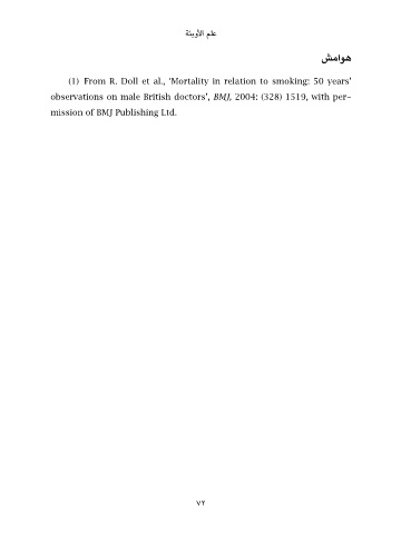 ﻋﻠﻢ اﻷوﺑﺌﺔ ﻫﻮاﻣﺶ (1) From R. Doll et al., ‘Mortality in relation to smoking: 50 years’ observations on male British doctors’, BMJ, 2004: (328) 1519, with per- mission of BMJ Publishing Ltd. 72