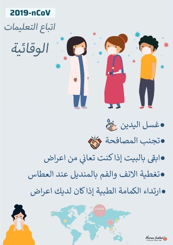 • •ﻏﺴﻞ اﻟ(ﺪﻳﻦ •ﺗﺠﻨﺐ اﻟﻤﺼﺎﻓﺤﺔ •اc §^ cﺎﻟﺒ(ﺖ إذاﻛﻨﺖ ﺗﻌﺎ [ UWﻣﻦ اﻋﺮاض •ﺗﻐﻄ(ﺔ اﻻﻧﻒ واﻟﻔﻢ cﺎﻟﻤﻨﺪ.ﻞ ﻋﻨﺪ اﻟﻌﻄﺎس •ارﺗﺪاء اﻟ¬ﻤﺎﻣﺔ اﻟﻄﺒ(ﺔ إذاœﺎن ﻟﺪ.ﻚ اﻋﺮاض