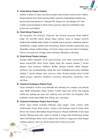 hingga menjadi atom. Pada umumnya tubuh organisma mengandung molekul yang