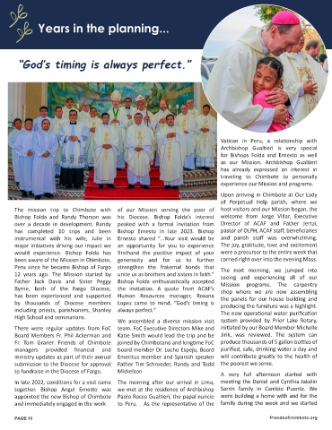 has completed 10 trips and been Bishop Ernesto in late 2023. Bishop pastor of OLPH, ACAF staff, beneficiaries