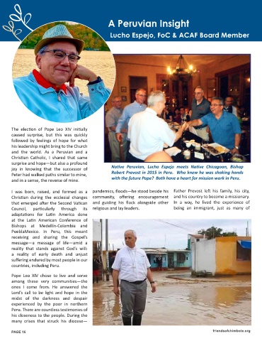 joy  in  knowing  that  the  successor  of     Native  Peruvian,  Lucho  Espejo  meets  Native  Chicagoan,  Bishop