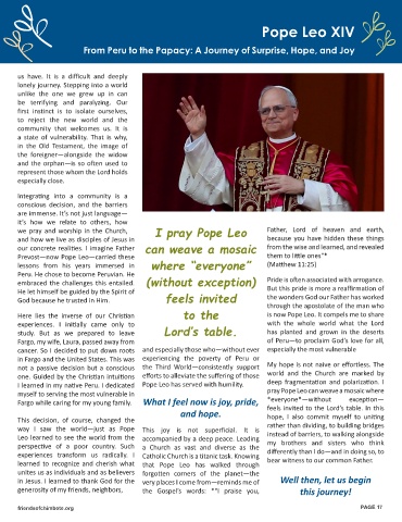 myself to serving the most vulnerable in                                    pray Pope Leo can weave a mosaic where