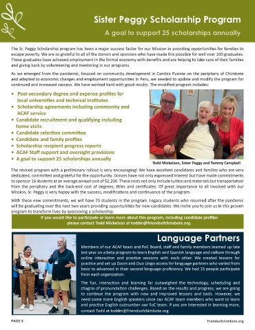 The Sr. Peggy Scholarship program has been a major success factor for our Mission in providing opportunities for families to