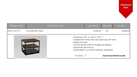 258113 344 (TT) EA BEAM END TABLE 90,400.00 40% 54,240.00