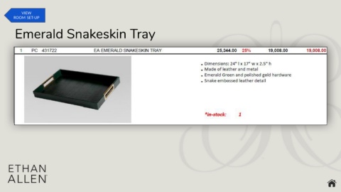 RETURN TO VIEW ROOM SET-UP -UP OOM SET R Emerald Snakeskin Tray