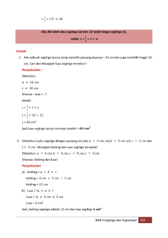 Jika AB ialah alas segitiga (a) dan CD ialah tinggi segitiga (t),