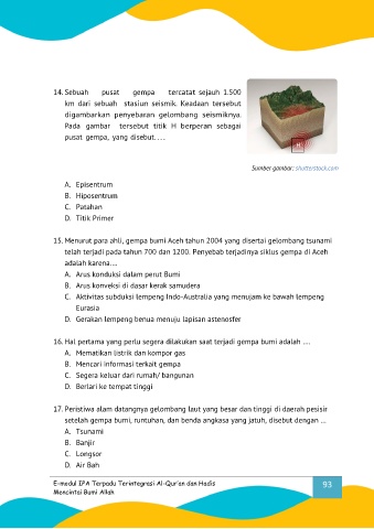15. Menurut para ahli, gempa bumi Aceh tahun 2004 yang disertai gelombang tsunami