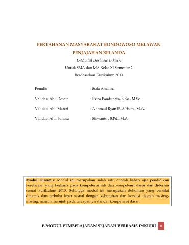 E-MODUL PEMBELAJARAN SEJARAH BERBASIS INKUIRI ii