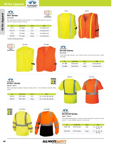 Hi-Vis Apparel Non-Rated DESCRIPTION COLOR SIZES
