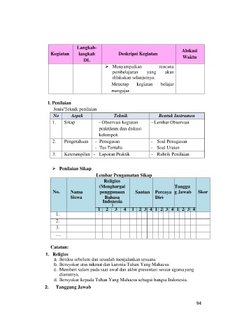 1. Sikap - Observasi kegiatan - Lembar Observasi