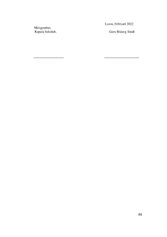 Luwu, Februari 2022 Mengetahui, Kepala Sekolah, Guru Bidang Studi ....................................... ............................................. 84