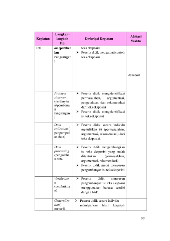 Kegiatan langkah Deskripsi Kegiatan Waktu