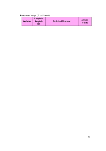 Pertemuan ketiga ( 2 x 45 menit) Langkah- Alokasi Kegiatan langkah Deskripsi Kegiatan Waktu DL 92