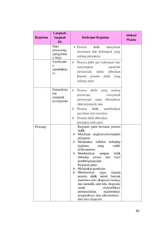 Kegiatan langkah Deskripsi Kegiatan Waktu
