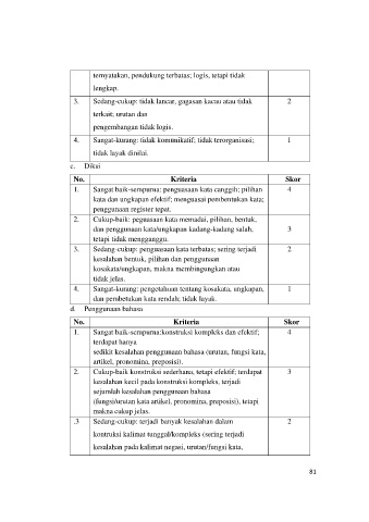 2. Cukup-baik: peguasaan kata memadai, pilihan, bentuk,