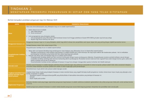 Berikut merupakan preskripsi pengurusan bagi Zon Rekreasi Aktif: