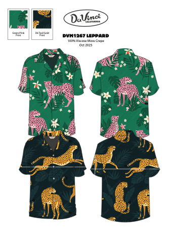 Green/Pink Print Dk Teal/Gold Print DVM1267 LEPPARD 100% Viscose Moss Crepe Oct 2025
