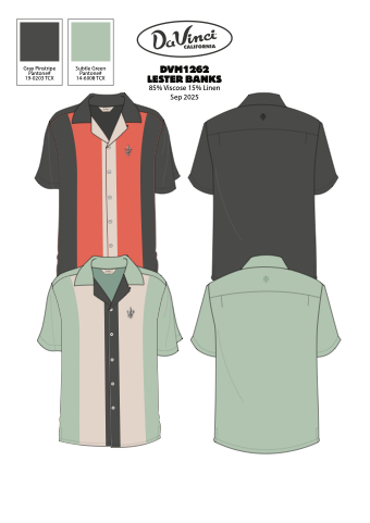 Gray Pinstripe Pantone# 19-0203 TCX Subtle Green Pantone# 14-6008 TCX DVM1262 LESTER BANKS 85% Viscose 15% Linen Sep 2025