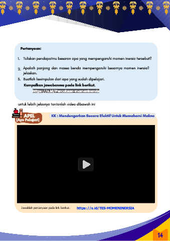 1. Tuliskan pendapatmu besaran apa yang mempengaruhi momen inersia tersebut?
